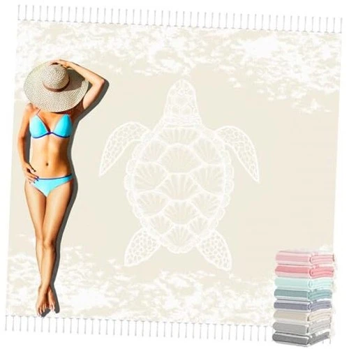 Oversized Turkish Beach Towel XLarge 71"x79"(180x200cm) Beige Turtle Tie Dye