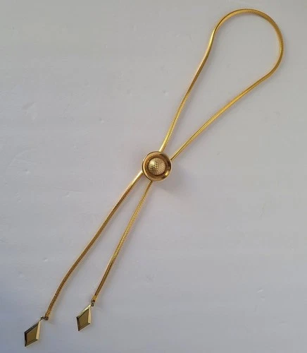 Vintage 1980s Gold Tone Serpentine Bolo Lariat Style Necklace 24”