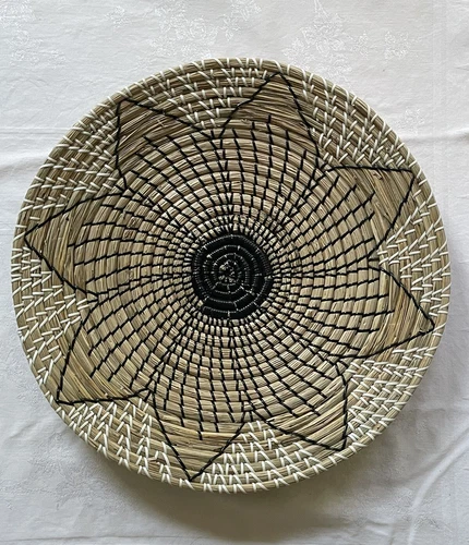 Seagrass Handmade Round Woven Basket Tray Sunflower Flower 20” Boho Wall Decor