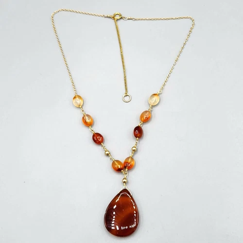 Artisan Teardrop Carnelian Bead Gold Fill Wire Wrap Sautoir Necklace 20" 15.2g
