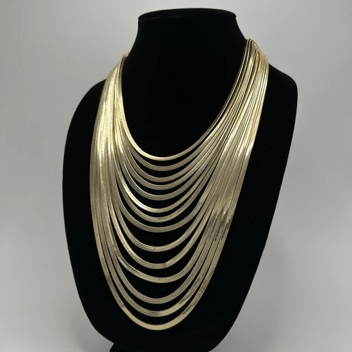 Vintage Style Gold Tone Multi Strand Snake Chain Fringe Statement Necklace 80s