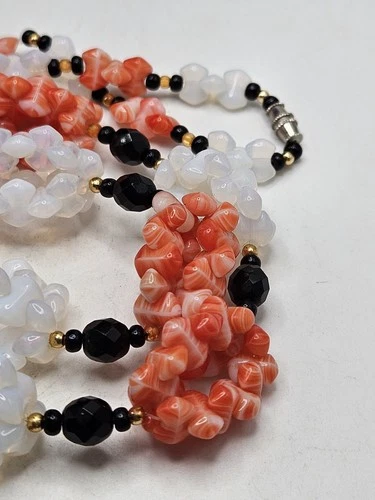 Vintage Opalite And Art Glass Bead Necklace. 22"