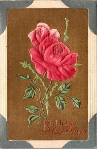 Vintage POSTCARD BIRTHDAY GREETINGS 1910 w/ Stamp Flowers Roses Germany