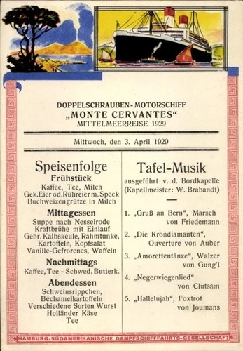 Postcard Steamer Monte Cervantes, HSDG, Mediterranean voyage 1929,... - 11560518