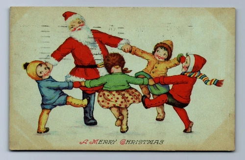 1929 CHRISTMAS SANTA DANCING WITH CHILDREN, TOLEDO, OHIO, PUTER Postcard P10