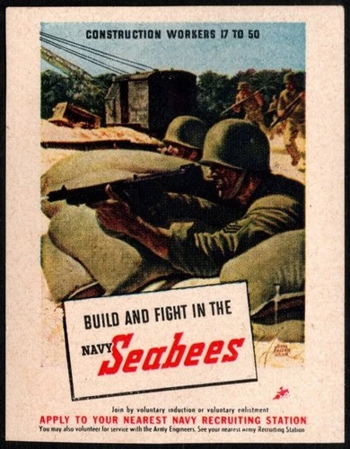 1943 US Poster Stamp Build Fight The Navy Seabees Join Voluntary Enlistment