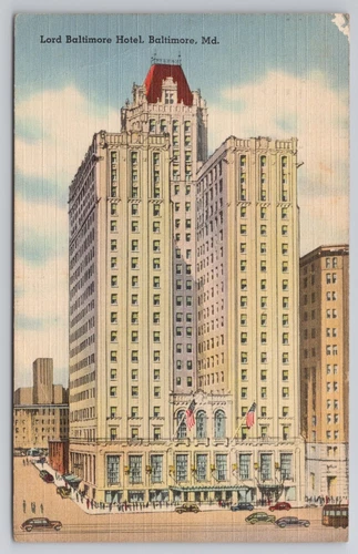 Lord Baltimore Hotel Cars Pvt APG Maryland MD 1944 Linen Postcard