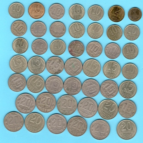 1946-91s. RUSSIA RUSSLAND 1, 2, 10, 15 and 20 KOPEKS LOT OF 47 COINS 4624