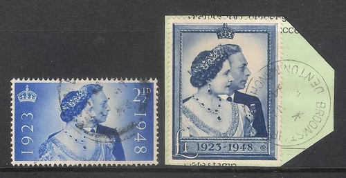 GB 1948 sg493-494 £1 RSW Royal Silver Wedding Set Fine Used (£1 on piece) A009