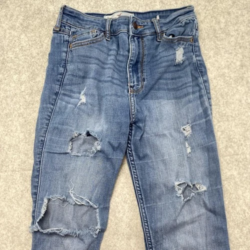 Hollister Skinny Jeans Juniors 1S (24x25) Blue Mid Rise Distressed *LIGHT STAIN*