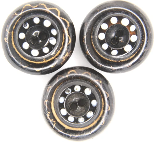 C1900 Antique Black Glass Gold Luster Button Floral White Polka Dot Flower LOT