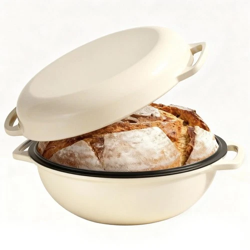 2-in-1 Multifunctional Enameled Cast Iron Dutch Oven, 6QT Loaf Pan with Dual ...