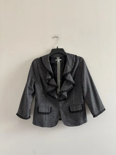 Y2K Charlotte Russe Blazer Gray Ruffle Crop 3/4 Sleeve Womens L Coquette Office