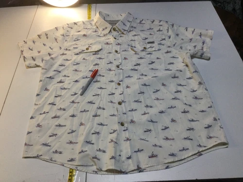 Eddie Bauer Outdoor Ivory Short Sleeve All Over Print Canoe Kayak Boat Mens 2XL