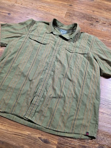 Woolrich Mens Fishing Shirt 2XL Striped Short Sleeve Green Snap Button Up Camp