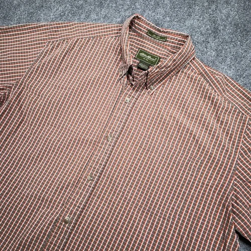 Eddie Bauer Shirt Mens XL Brown Checkered 80's 2 Ply Cotton Poplin Stretch