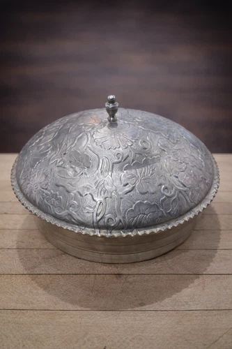 Silver Tone Covered Dish 3 Section Glass Bowl Floral Lid Vintage