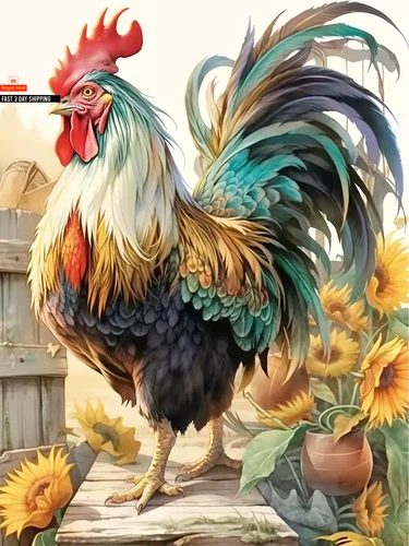 HUACAN Diamond Mosaic Animal Cross Stitch Chicken Full Square round Painting Pic