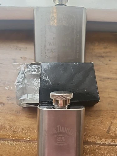 Vintage 2003 Stainless Steel Jack Daniels 1oz And 3oz Hip Flasks