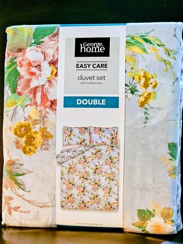 George Home Grey Floral Reversible Double Size Duvet Set