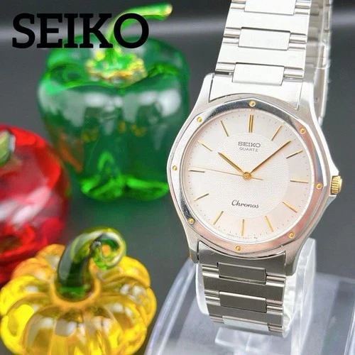Seiko Chronos Quartz Dress Watch Rare Vintage Octagon 40mm Mens wrist 21cm
