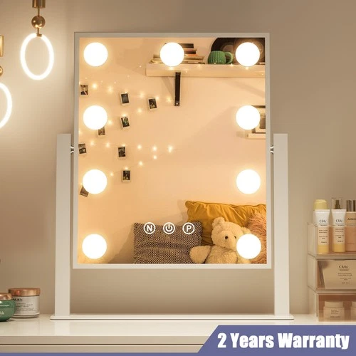 White Makeup Mirror with 9 LED Bulbs Dimmable Touch Control Freestanding Mirror