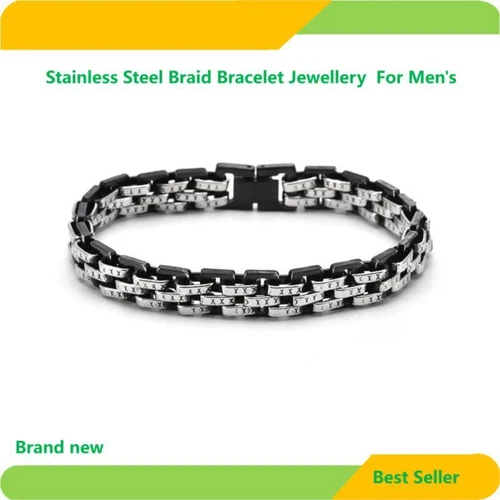 Men's Solid 316L Engraved Stainless Steel Braid Bracelet Jewellery Gift 21CM