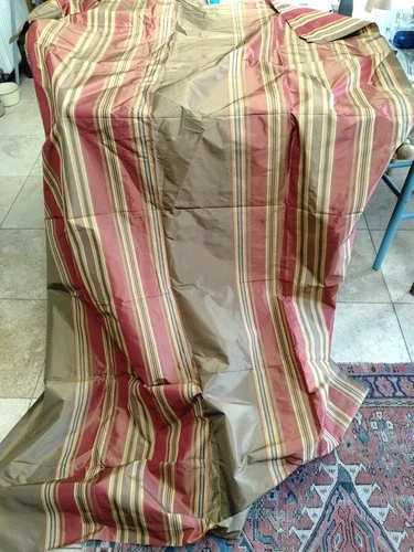 Jim Thompson Thai silk striped gold grey rust fabric 210cm x 137cm