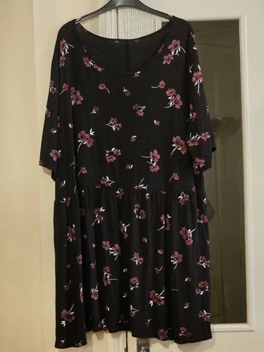 Lovely Womens Yours Black Burgundy Floral Stretchy Dtess Size 22 Nice Condition