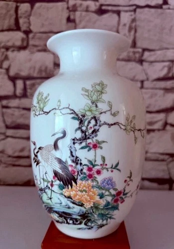 22cm Tall Cranes & Flowers Painting Ceramic Flower Vase for Home Decor / Gift