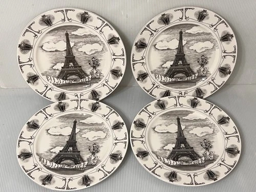 Set of 4, 222 Fifth Around the City Dinner Plates Paris France Eiffel Tower