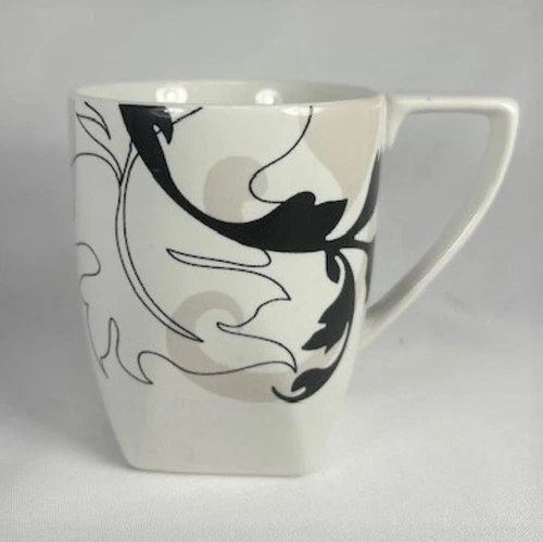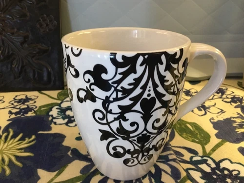 Mug 222 Fifth Coffee Cup Modern Scroll Black Lines on White