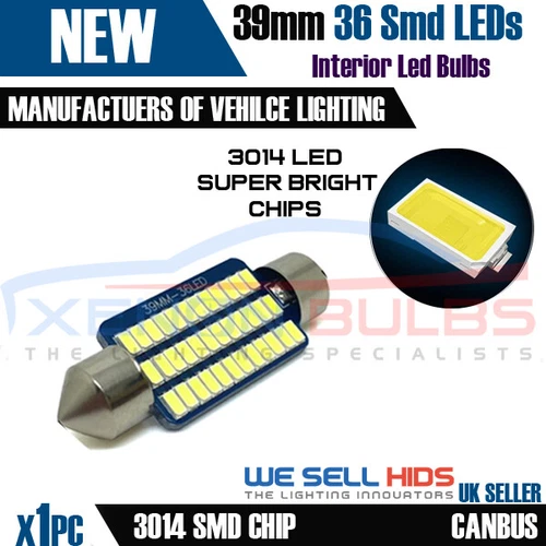 INTERIOR NUMBER PLATE LED FESTOON 239 38MM 39MM 41MM CANBUS BULB IN PURE WHITE