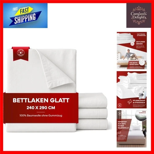 Smooth White Cotton Flat Sheet - Versatile & Durable, 240 x 300 cm