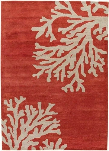 Coastal Corel Red Hand Tufted 100% Nz Wool Soft Area Rug Modern Rug