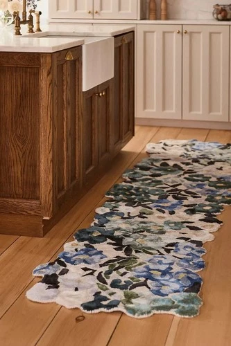 Hand-Tufted Floral Wool Viscose Rug Blue Green Ivory Modern Runner Carpet