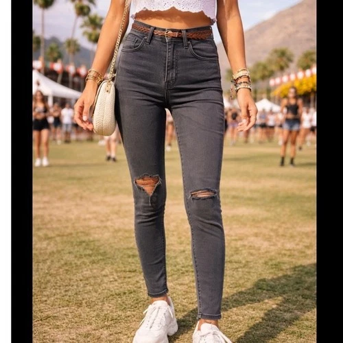 Madewell Curvy High Rise Skinny Jeans 25P Faded Black Distressed Raw Hem