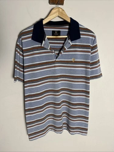 Guinness Striped Polo Shirt - Blue, White, Orange - Men’s XL - 25” P2P