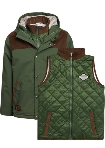 Volcom Snow 2 In 1 Insulated Jacket Military Green & Brown Kids Large 12/14 G3
