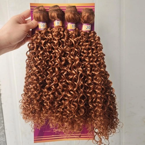 Highlight Brown Afro Kinky Curly Synthetic Hair Weave 4 Bundles 16 18 18 20 In