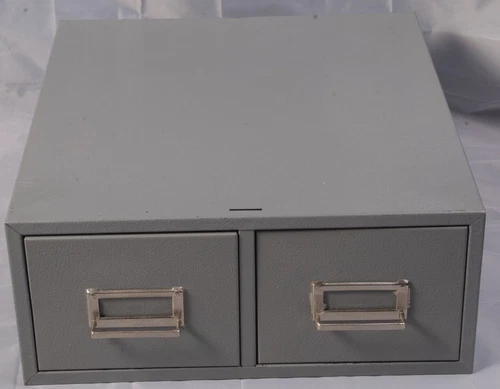 Steel Double Drawer Library 3x5 Index Card File Gray Cabinet USA Vntg
