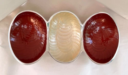 Vintage Mid Century Red Burgundy and Cream Enameled 3 Section Metal Server Bowl