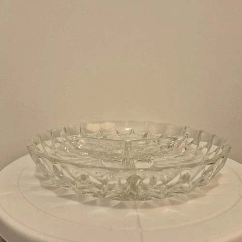 Vintage Glass Dish 3 Sections for Nibbles 21cm Pressed Glass