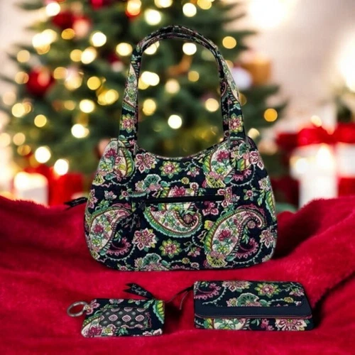 Vera Bradley Blue Green Pink Yellow Floral Paisley 3 Section Shoulder Bag-Wallet