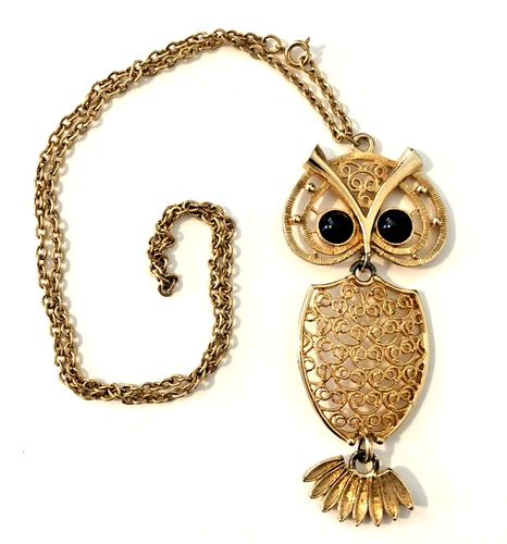 Sarah Coventry 3-Section Owl Pendant Necklace Gold Tone Signed Vintage 1970s