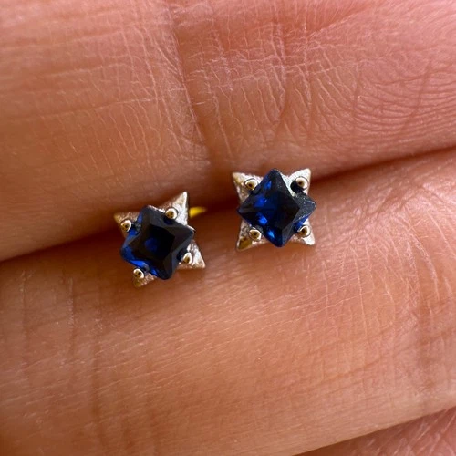 925 Sterling Silver Earrings 3mm Natural Blue Zircon Gemstone Star Jewelry Gift