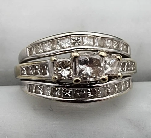 14k 585 Gold WG Diamond 1.93 ctw Pave Engagement 3 Band Sz 9.5 Ring Au 2255