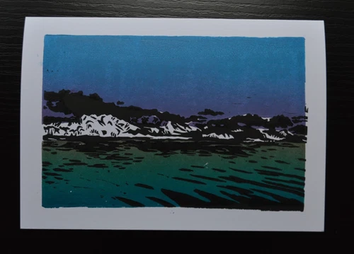 Mountain landscape relief print card with envelope Linocut 5"x7" 300 gsm
