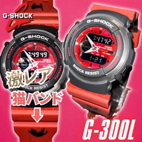 Casio G-Shock G-300L Red Dial Black Cat Print Sport Watch