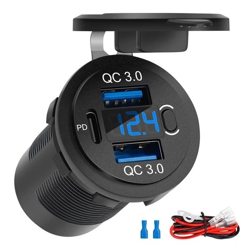 Dual QC3.0 18W & PD 30W Charging Port,USB C Car Socket with Voltmeter,9481